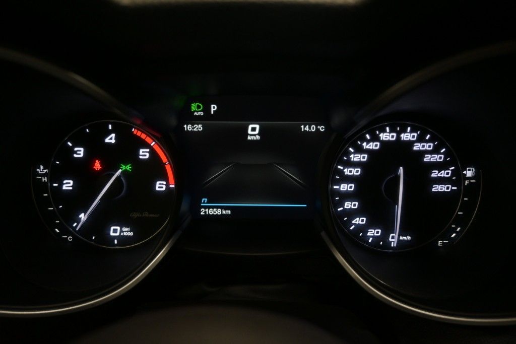 ABS , Accensione automatica degli anabbaglianti con sensore crepuscolare [051] , Active Cruise Control (ACC) [NH3] , AEB Autonomus Emergency Brake [55B] , AFS , Airbag guida , Airbag laterali , Airbag passeggero , Airbag per la testa , Alfa Connect 3D Nav 8,8" Multitouch con ingresso usb/aux, bluetooth streaming e comandi al volante [9YP] , Alfa DNA Drive Mode System , Apertura/chiusura centralizzata con telecomando [57E] , Autoradio Mp3 , Bocchetta climatizzazione sedili posteriori [693] , Bracciolo sedili anteriori , Batticalcagno in alluminio [79U] , Blind Spot: monitoraggio angolo cieco , Cambio automatico e sequenziale , Cerchi in lega da 17" , Chiave con transponder , Climatizzatore automatico bizona [HAF] , Controllo elettronico della stabilit� , Controllo elettronico della trazione , Cornici interne nere , Correttore assetto fari , Disattivazione airbag passeggero [4DK] , Fari posteriori a LED [4EA] , Fendinebbia a led con funzione cornering , Filtro anti particolato , Forward Collision Warning , Hill Descent Control (HDC) [BNH] , Immobilizzatore , Indicatore temperatura esterna , Integrated Brake System (IBS) , Integrazione con smartphone Apple CarPlay/Android Auto [8EW] , Lane departure warning [LA1] , Lavafari [102] , Navigatore satellitare , Pretensionatore cinture , Proiettori Anteriori Bi-Xenon da 35W con AFS [230] , Quadro strumenti con display TFT a colori da 7" , Retrovisori regolabili, riscaldabili e reclinabili elettricamente con indicatori di direzione integrati , Sedili anteriori con 6 regolazioni manuali , Sedili in tessuto nero [732] , Sensore pioggia per tergicristallo [347] , Sensori di parcheggio anteriori e posteriori , Servosterzo , Start&Stop [5DE] , Tergilunotto , Terzo poggiatesta posteriore [543] , TPMS (Sensore pressione pneumatici) [365] , Vetri elettrici anteriori e posteriori , Vivavoce Bluetooth , Volante in pelle con comandi multifunzione e tasto di avviamento integrato , Volante regolabile in altezza e profondit� , Serbatoio aggiuntivo AdBlue , Telecamera posteriore con griglie dinamiche di ausilio al parcheggio [316] , Doppio terminale di scarico nero [947] , Portellone posteriore con aperura elettronica , Cristalli posteriori oscurati , Wireless Charging: ricarica smartphone a induzione , Kit riparazione pneumatici [499].