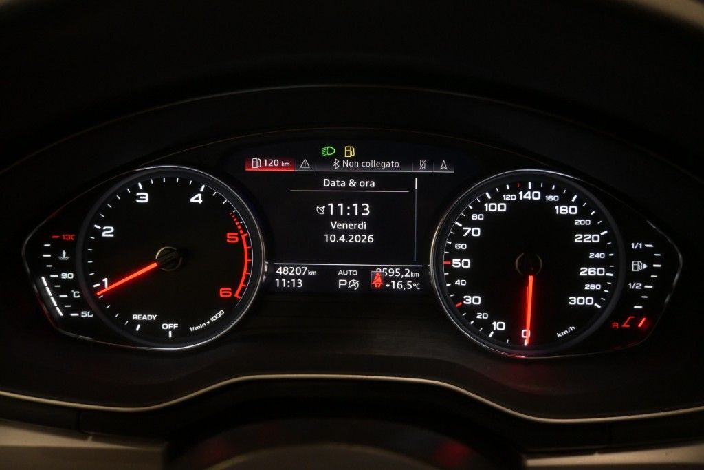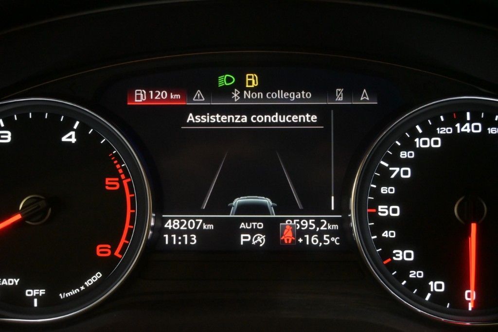 ABS , Airbag guida , Airbag laterali anteriori e sistema di airbag laterali per la testa , Airbag passeggero , Appoggiabraccia centrale anteriore comfort , Appoggiatesta anteriori variabili , Appoggiatesta posteriori , Attrezzi di bordo , Audi connect emergency call & Service , Audi connect navigation & infotainment plus [IT3] , Audi Drive Select (modalit�: comfort, auto, dynamic, efficiency ed individual) , Audi pre sense city , Autoradio MMI plus con MMI touch 10,1” con ingrsoo USB e comandi al volante , Battitacco anteriore con inserto in alluminio , Cambio automatico e sequenziale S tronic con leve al volante , Cerchi in lega da 17” , Chiave con transponder , Chiusura centralizzata con telecomando , Climatizzatore manuale , Cofano anteriore con sistema di protezione dei pedoni , Controllo elettronico della stabilit� , Controllo elettronico della trazione , Correttore assetto fari , Cruise control , Disattivazione airbag lato passeggero [4UF] , Dispositivo antiavviamento elettronico , Filtro anti particolato , Freno di stazionamento elettromeccanico , Gruppi ottici posteriori a LED , Illuminazione interna e maniglie esterne full led , Indicatore temperatura esterna , Suggerimento pausa guidatore , Parabrezza con isolamento acustico , Pretensionatore cinture , Proiettori anteriori in tecnologia LED , Ricezione Radio digitale (DAB) , Sedili anteriori regolabili elettricamente con regolazione lombare, lato guida con funzione memory , Sedili posteriori con schienale ribaltabile (40:20:40) con appoggiabraccia centrale posteriori , Sedili anteriori riscaldabili elettricamente [4A3] , Sensore luci , Sensore pioggia , Servosterzo elettromeccanico , Sistema di ancoraggio ISOFIX e 3� punto di ancoraggio Top Tether sui sedili post. laterali , Sistema di controllo pressione pneumatici , Sistema di navigazione ad alta risoluzione con display da 10.1" (con risoluzione 1540x720) , Sistema Start & Stop , Specchietti retrovisori esterni schermabili automaticamente , Specchietti retrovisivi esterni regolabili, riscaldabili e ripiegabili elettricamente con indicatori di direzione integrati in contrasto con la carrozzeria , Specchietto retrovisivo interno schermabile automaticamente con design senza cornice , Sedili rivestiti in pelle , Sensori di parcheggio posteriori , Vani portaoggetti/portabevande , Vetri elettrici anteriori e posteriori , Volante in pelle regolabile in altezza e profondit� , Tetto panoramico in vetro ad azionamento elettrico [3FB] , Vetri laterali posteriori e lunotto oscurati [QL5] , Portellone posteriore con apertura elettronica , Serbatoio aggiuntivo di AdBlue [FK2] , Kit riparazione pneumatici.