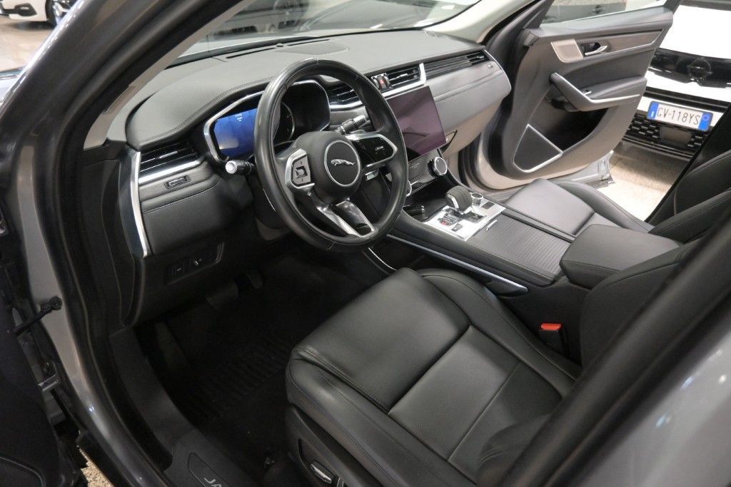 ABS , Airbag a tendina per l'intera lunghezza del finestrino laterale , Airbag guidatore e passeggero con sensore di rilevamento presenza sul sedile del passeggero , Airbag laterali , Alette parasole con luce di cortesia , All Surface Progress Control (ASPC) , Appoggiatesta posteriori , Avviso cinture di sicurezza , Badge F-Pace , Bluetooth� connectivity , Bocchette climatizzatore per i passeggeri posteriori , Cambio automatico e sequenziale con paddle al volante , Cerchi in lega da 18" , Chiave con transponder , Chiusura centralizzata , Climatizzatore a due zone [022AY] , Console centrale con bracciolo , Correttore assetto fari , Cruise Control: Controllo della velocit� di crociera [065AB] , DAB (Digital Audio Broadcasting) [025JB] , Dispositivo di ausilio alla frenata di emergenza (EBA) , Dispositivo per frenata di emergenza [065EE] , Dynamic Stability Control (DSC) , Eco HMI con analisi dei parametri di guida , Fari a LED Premium con luci diurne caratteristiche [064QB] , Filtro anti particolato , Finestrini elettrici con apertura/chiusura "one-touch" , Finiture in alluminio Engine Spin [088TN] , Freno di stazionamento elettrico (EPB) , Hill Launch Assist: assistenza per partenza in salita , Illuminazione console superiore , Immobilizzatore , InControl Remote [011BJ] , Integrazione per smartphone Apple CarPlay e Android Auto , Jaguar Drive Control: 4 modalit� di guida selezionabili , Keyless GO: accensione senza chiave , Lane Keep Assist [086BH] , Maniglie delle porte anteriori interne con interruttori di blocco separati , Monitoraggio delle condizioni del guidatore [086DH] , Poggiatesta anteriori passivi con prevenzione del colpo di frusta , Portaoggetti con serratura [030DL] , Pretensionatore cinture , Quadro strumenti da 5" con quadranti analogici [038IC] , Retrovisori regolabili, riscaldabili e ripiegabili elettricamente con indicatori di direzione integrati e logo di benvenuto , Riconoscimento Segnali Stradali (Traffic Sign Recognition) e Limitatore di velocit� intelligente [086DC] , Rilevatore temperatura esterna , Sedili anteriori elettrici , Sedili posteriori ribaltabili 40:20:40 con poggiatesta e bracciolo centrale [300KC] , Sedili in pelle , Sensore appannamento , Sensori parcheggio anteriori e posteriori [189AE] , Servosterzo elettrico (EPAS) , Sistema di chiusura per bambini ad azionamento elettrico , Sistema di controllo pressione pneumatici (TPMS) [062AD] , Sistema posteriore di ancoraggio ISOFIX per seggiolino bambini , Soglie delle portiere illuminate con scritta [048BD] , Sound System (125W) [025KN] , Specchietto retrovisore interno fotocromatico , Surround Camera 3D: telecamera a 360� [086GP] , Tergicristalli con sensore pioggia , Tergicristalli intermittenti variabili , Tergilunotto , Terzo poggiatesta posteriore , Torque Vectoring by Braking (TVBB) , Touch Screen ad alta risoluzione da 11.4" con ingresso usb, bluetooth streaming e comandi al volante , Volante in Pelle regolabile , Tetto panoramico apribile con tendina elettrica [041CZ] , Trazione integrale AWD , Cristalli posteriori oscurati , Serbatoio aggiuntivo di AdBlue , Kit fix&go.