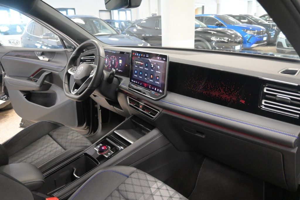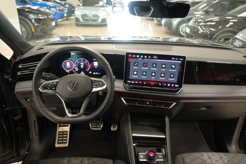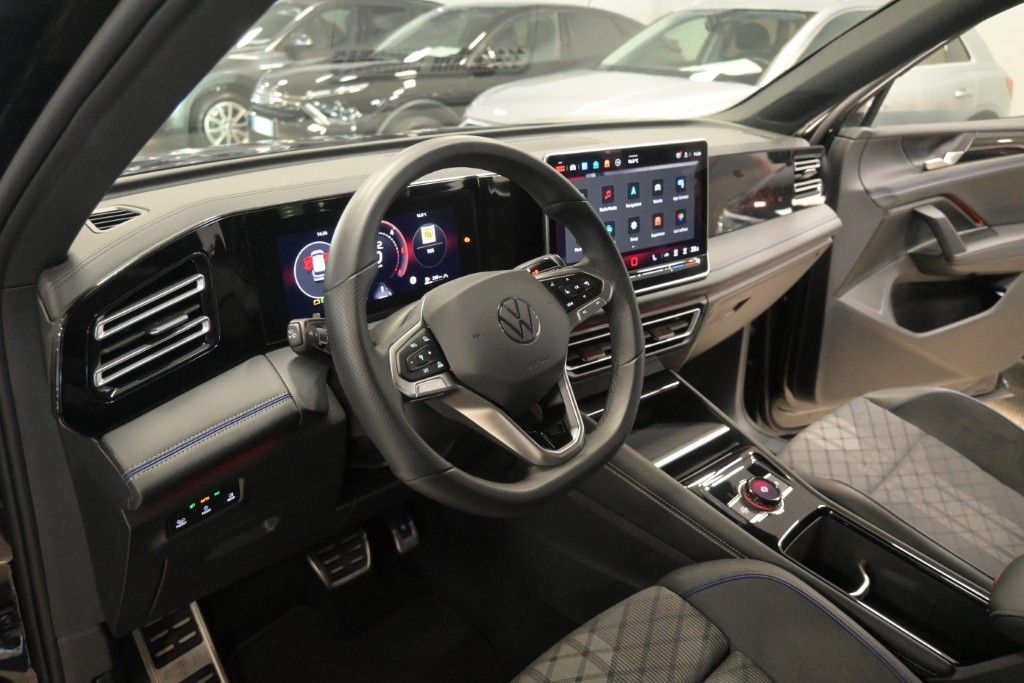 2 ingressi USB-C anteriori [U9G] , ABS , Accensione automatica luci diurne a LED con funzione "Leaving e Coming Home" [9I5] , Adaptive Cruise Control predittivo (ACC) [8T3] , Airbag laterali anteriori e posteriori, Airbag per la testa e airbag centrale anteriore [6C4] , Airbag per conducente e passeggero (lato passeggero disattivabile) , Alette parasole orientabili con specchietti di cortesia illuminati [5XJ] , Ambient Light a 30 tonalit� (illuminazione diffusa nell'abitacolo) [QQ9] , App Connect con funzione Wireless, per Apple CarPlay e Android Auto [9WJ] , Appoggiabraccia centrale anteriore [6E3] , Appoggiatesta anteriori regolabili , Appoggiatesta per sedili anteriori R-Line , Appoggiatesta posteriori regolabili in altezza , Assistenza partenza in salita , Avviso del cambio di corsia , Battitacco in alluminio nei vani porta anteriore , Bluetooth� [9ZX] , Bracciolo centrale posteriore con 2 portabicchieri , Calotte degli specchietti in tinta carrozzeria [6FF] , Cambio automatico e sequenziale DSG con paddle al volante , Cerchi in lega "Coventry" da 19'' Black VW R con superficie diamantata , Chiave con transponder , Chiusura centralizzata , Climatizzatore automatico a tre zone "Climatronic" [KH7] , Controllo elettronico della stabilit� (ESC) [1AQ] , Controllo elettronico della trazione , Correttore assetto fari , Digital Cockpit Pro da 10,2" [7J2] , Dispositivo antiavviamento elettronico , Divano posteriore scorrevole con schienale reclinabile asimmetricamente [5KR] , Driving Profile Selection: 4 modalit� di guida selezionabili , Emergency Call [NZ4] , Emergency Exit Warning System (sistema di avviso auto e ciclisti nell'apertura porte) , Fanale retronebbia , Fari anteriori IQ.Light LED Performance , Fari posteriori IQ.Light LED Performance [PLA] , Filtro anti particolato , Freno di stazionamento elettronico con funzione Auto-Hold , Front Assist: Sistema di frenata di emergenza con riconoscimento dei pedoni e dei ciclisti , Impianto audio con 1 altoparlante centrale e 8 nell'abitacolo , Indicatore temperatura esterna , Infotainment con display touch da 12,9" con USB e bluetooth streaming , Keyless GO: sistema di avviamento senza chiavi [4I7] , Lane Assist (Sistema di assistenza al mantenimento di corsia) [6I1] , Light Assist: Sistema di oscuramento automatico dei fari abbaglianti [8G1] , Listelli cromati sui vetri laterali [4ZB] , Listelli illuminati tra i fari anteriori e maniglie delle porte illuminate [UD8] , Luci All Weather, di svolta e per autostrada [8WP] , Luci diurne con gestione automatizzata delle luci , Mancorrenti cromati [3S1] , Park Assist Plus: sensori di parcheggio anteriori e posteriori (sistema di parcheggio semi-automatico) [8A2] , Pedali in acciaio spazzolato [VF1] , Presa corrente 12V nella consolle centrale e nel vano bagagli , Pretensionatore cinture , Rear Traffic Alert (sistema di assistenza nelle manovre di uscita parcheggio) , Regolazione dinamica della profondit� dei fari, con luce in curva dinamica , Riconoscimento della segnaletica stradale [QR9] , Rilevatore di distrazione e stanchezza del conducente [EM2] , Rivestimento porte e pannelli laterali in schiuma espansa, inserti in similpelle , Scomparti portaoggetti in plancia (illuminato), al tetto, nelle porte e nel vano bagagli , Sedile conducente ergoActive [3PU] , Sedili anteriori con funzione massaggio , Sedili anteriori regolabili in altezza , Sedili sport comfort in tessuto con motivo "R-Line" , Sensore pioggia [8N6] , Servosterzo elettromeccanico regolato in funzione della velocit� , Side Assist Plus (Rear Traffic Alert, Lane change assist e Emergency exit warning system) [79H] , Sistema di frenata di emergenza , Sistema Start/Stop con recupero dell'energia in frenata [7L6] , Specchietti retrovisori esterni regolabili, riscaldabili e ripiegabili elettricamente con indicatori di direzione integrati con logo di benvenuto , Specchietto interno schermabile automaticamente , Spia di controllo pressione pneumatici , Supporto lombare a regolazione pneumatica per sedili anteriori [8I6] , Tergilunotto , Vetri elettrici anteriori e posteriori , Vetri laterali posteriori e lunotto oscurati e insonorizzati [VW5] , Videocamera per retromarcia "Rear View" [KA2] , Volante regolabile in altezza e profondit� , Volante sportivo multifunzione in pelle con palette per cambio DSG [2PE] , Serbatoio aggiuntivo di AdBlue , Ruotino di scorta.